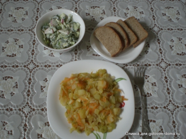 Вау! Сколько вкуснятины! Молодцы девчонки! А у нас сегодня жара, хочется легкой пищи, поэтому на ужин овощное рагу и салат из овощей.