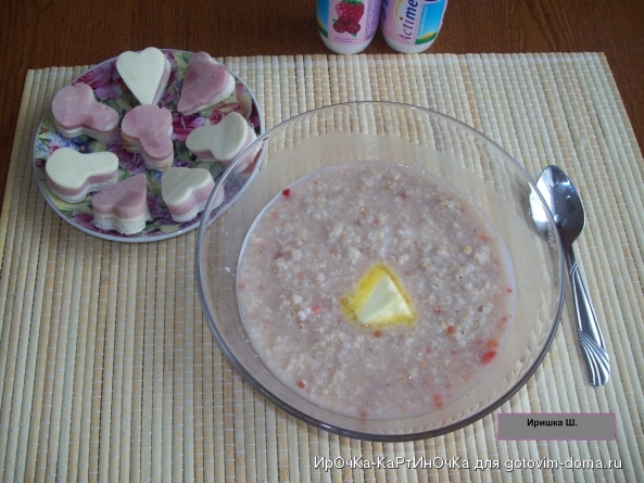 Овсяная кашка с клубникой и бутербродиками...