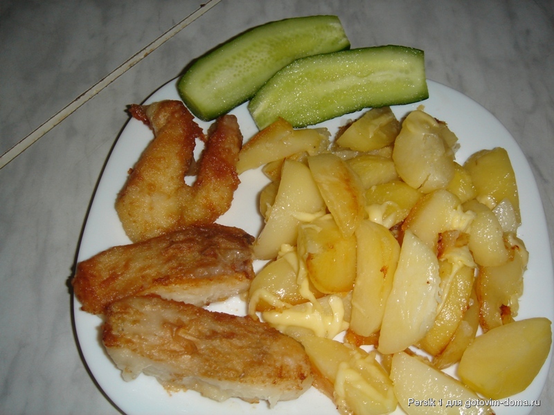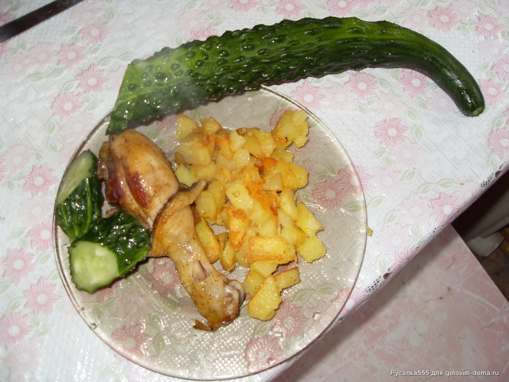 У меня сегодня рогалики, не совсем получившиеся , и картошечка жареная с курочкой и с маленьким огурчиком из теплички а еще колбаска с детства от Feline