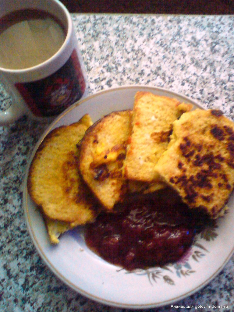 Сладкие гренки с клубничным вареньем и кофе