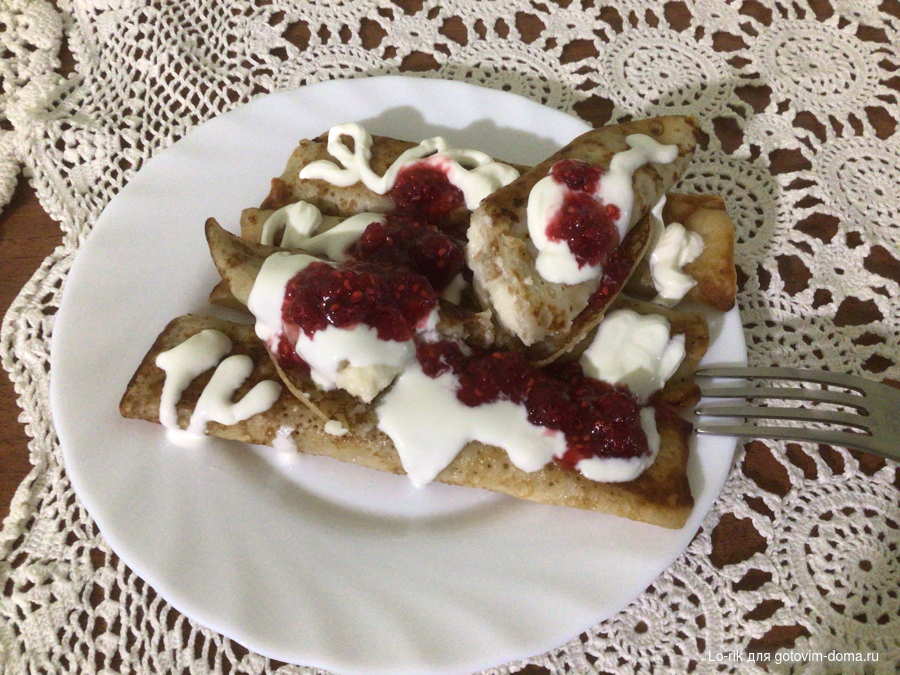 Заварные блины на кефире с творогом